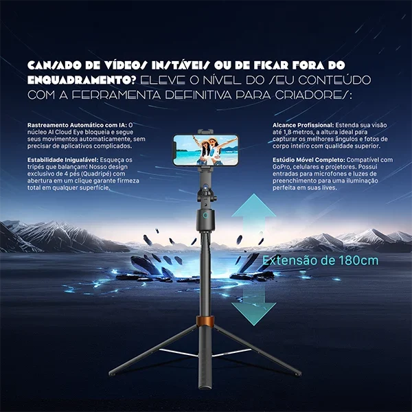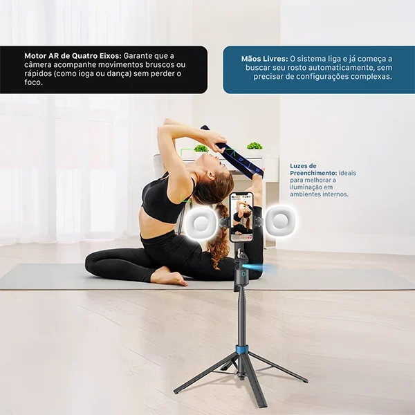 -Rastreamento facial automático via Bluetooth para gravações dinâmicas.