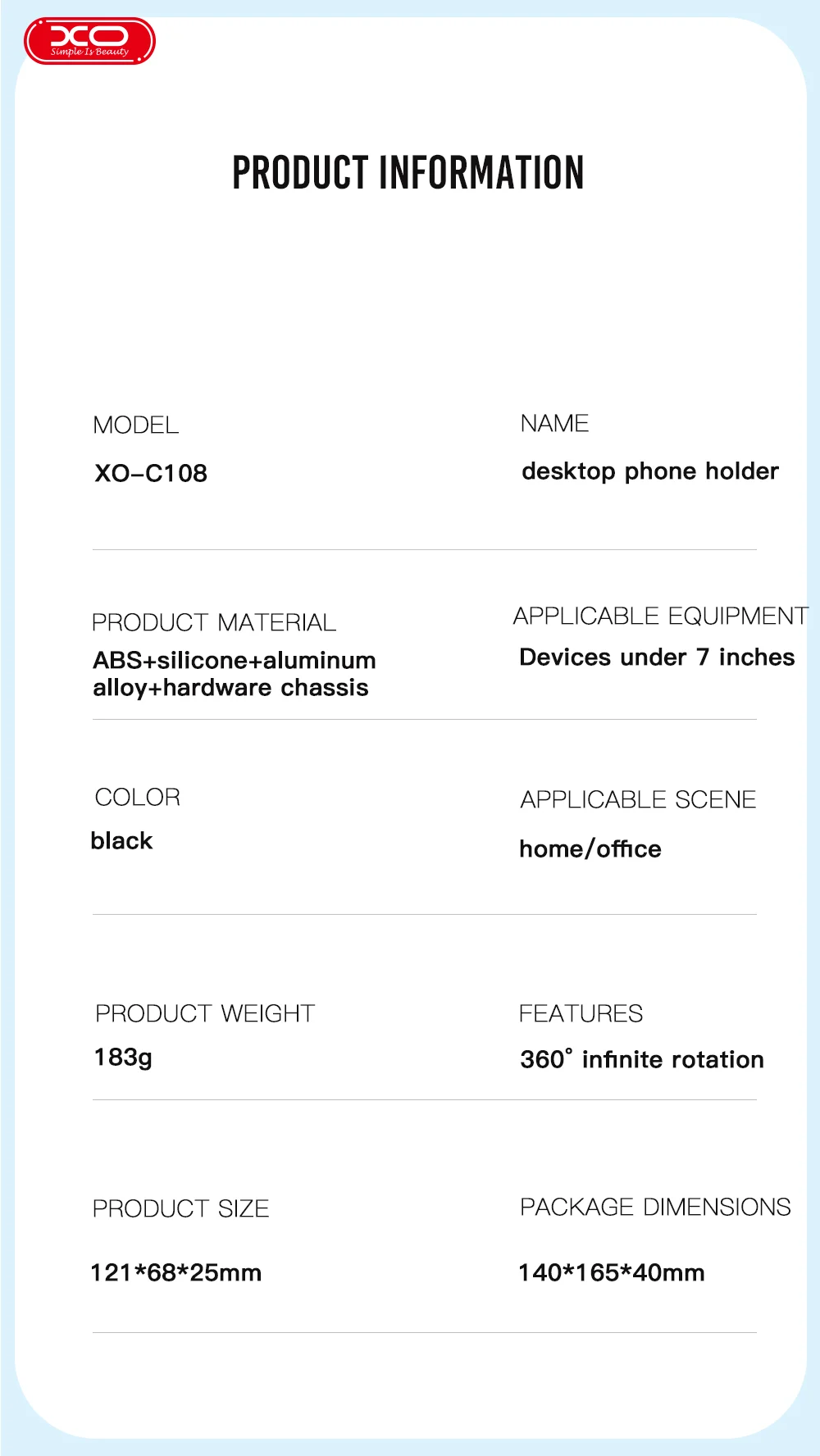 O Suporte para Celular C108 é uma solução prática e funcional para manter seu smartphone fixo e estável em diferentes ambientes. Ideal para uso em mesas, bancadas ou em qualquer superfície plana, ele oferece suporte seguro para facilitar o manuseio, leitura ou visualização de vídeos.