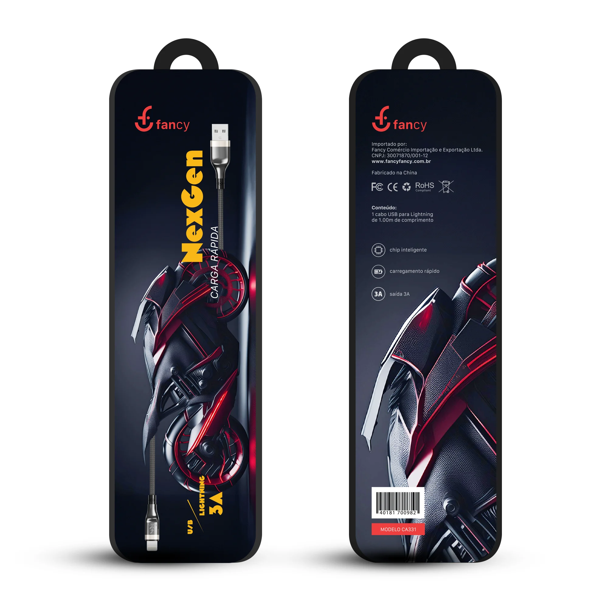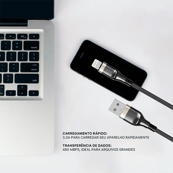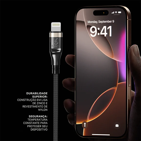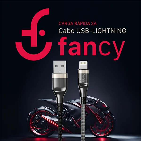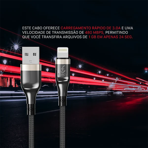 O Cabo Trançado CA331 da Fancy combina durabilidade e alta performance, com revestimento em nylon trançado e case de metal para maior proteção e resistência no uso diário.