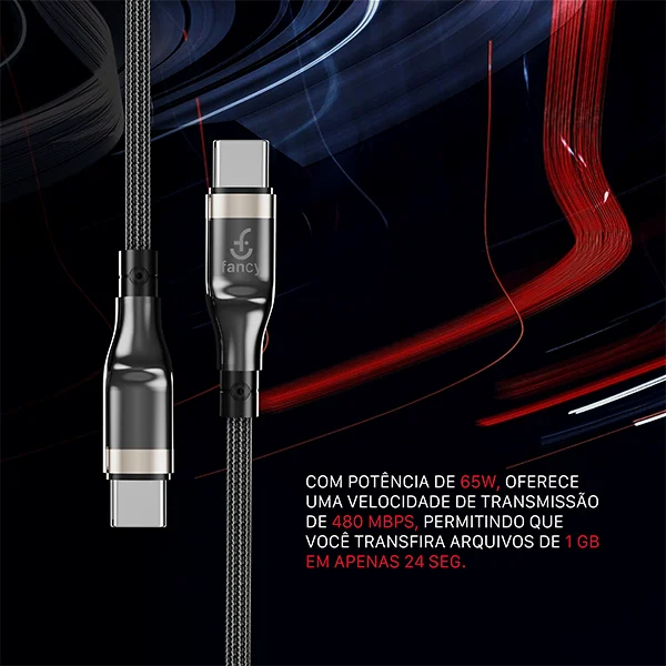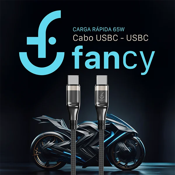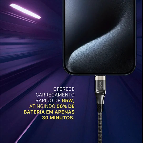 O Cabo Turbo CA333 da Fancy combina durabilidade e alta performance, com case de metal e revestimento em nylon trançado para maior resistência e proteção.