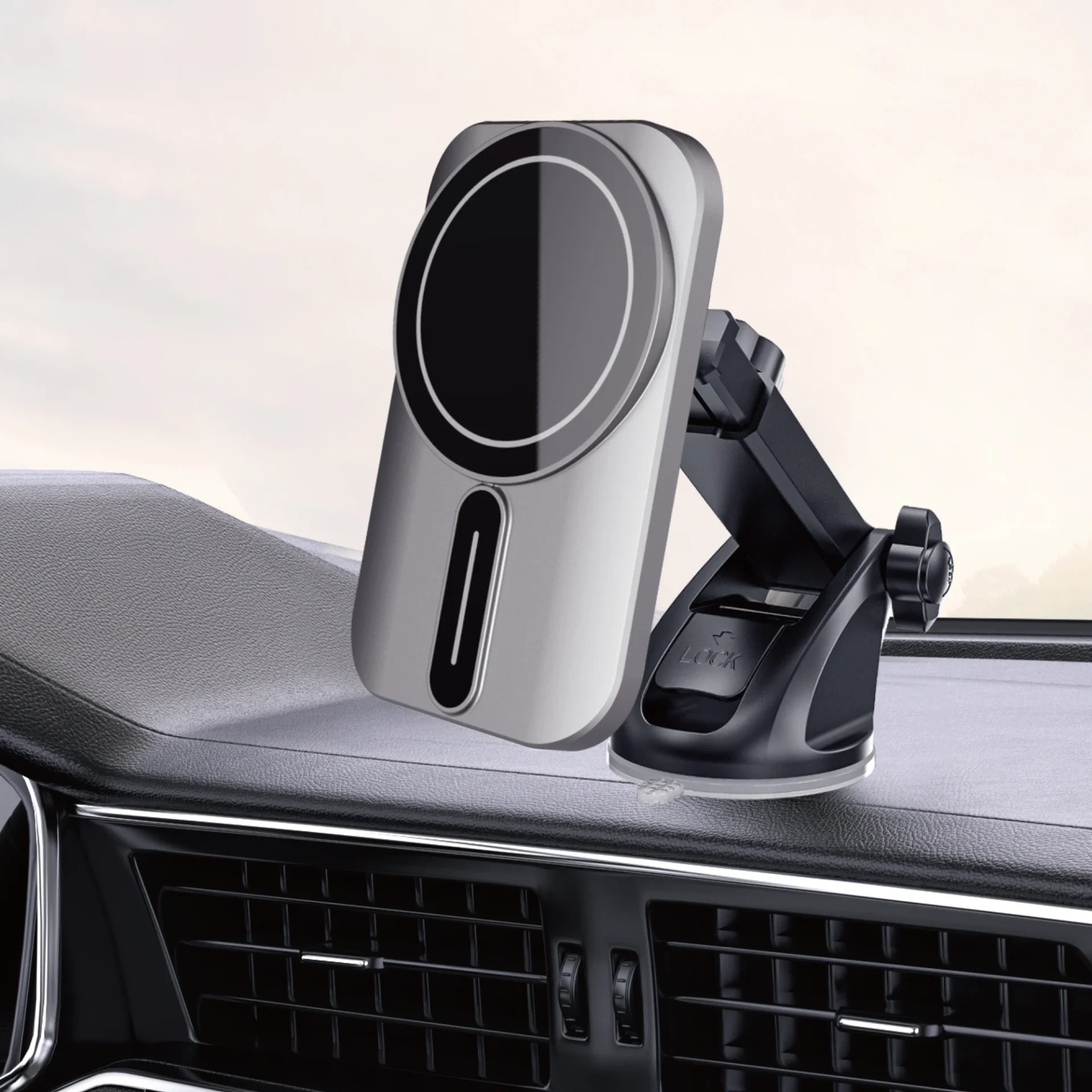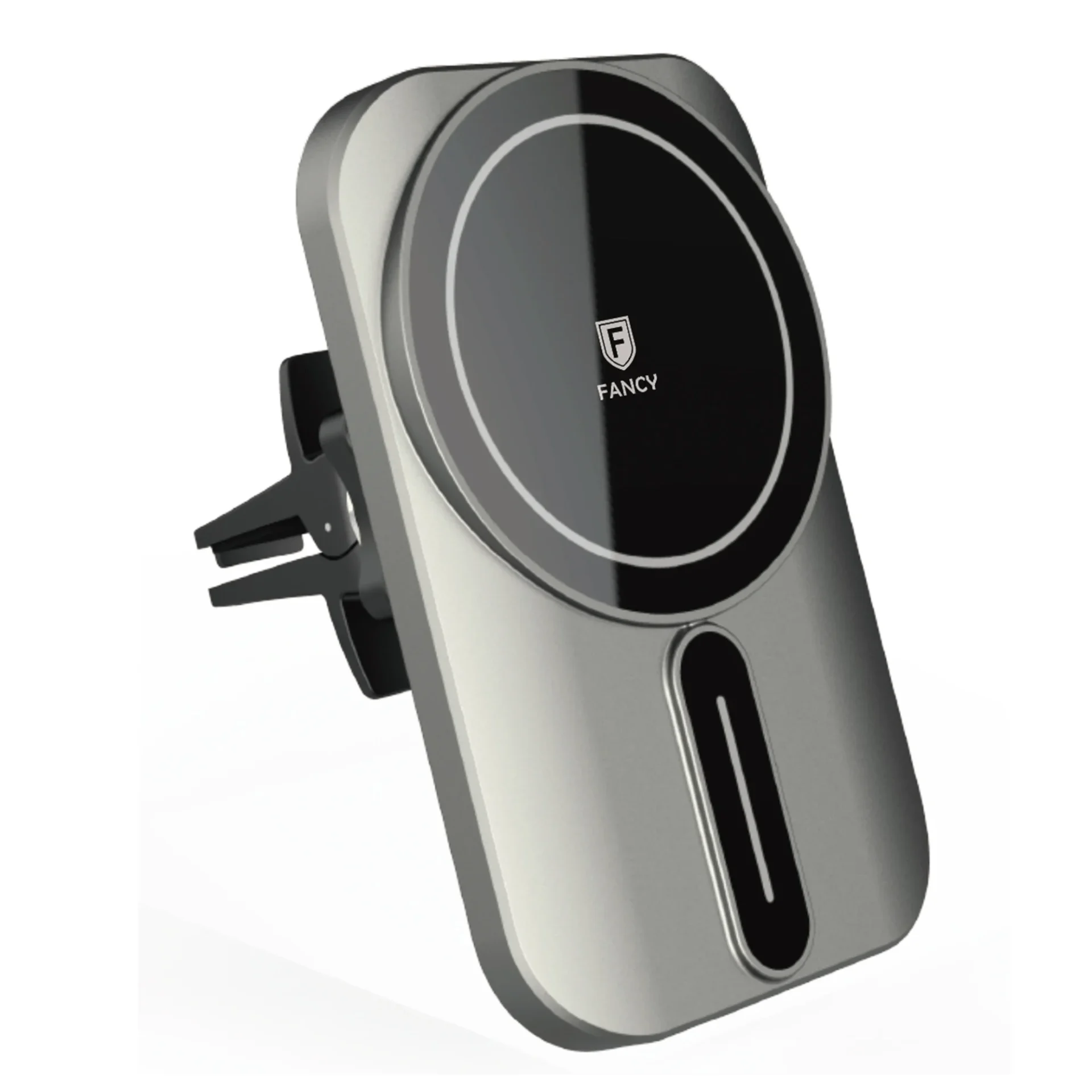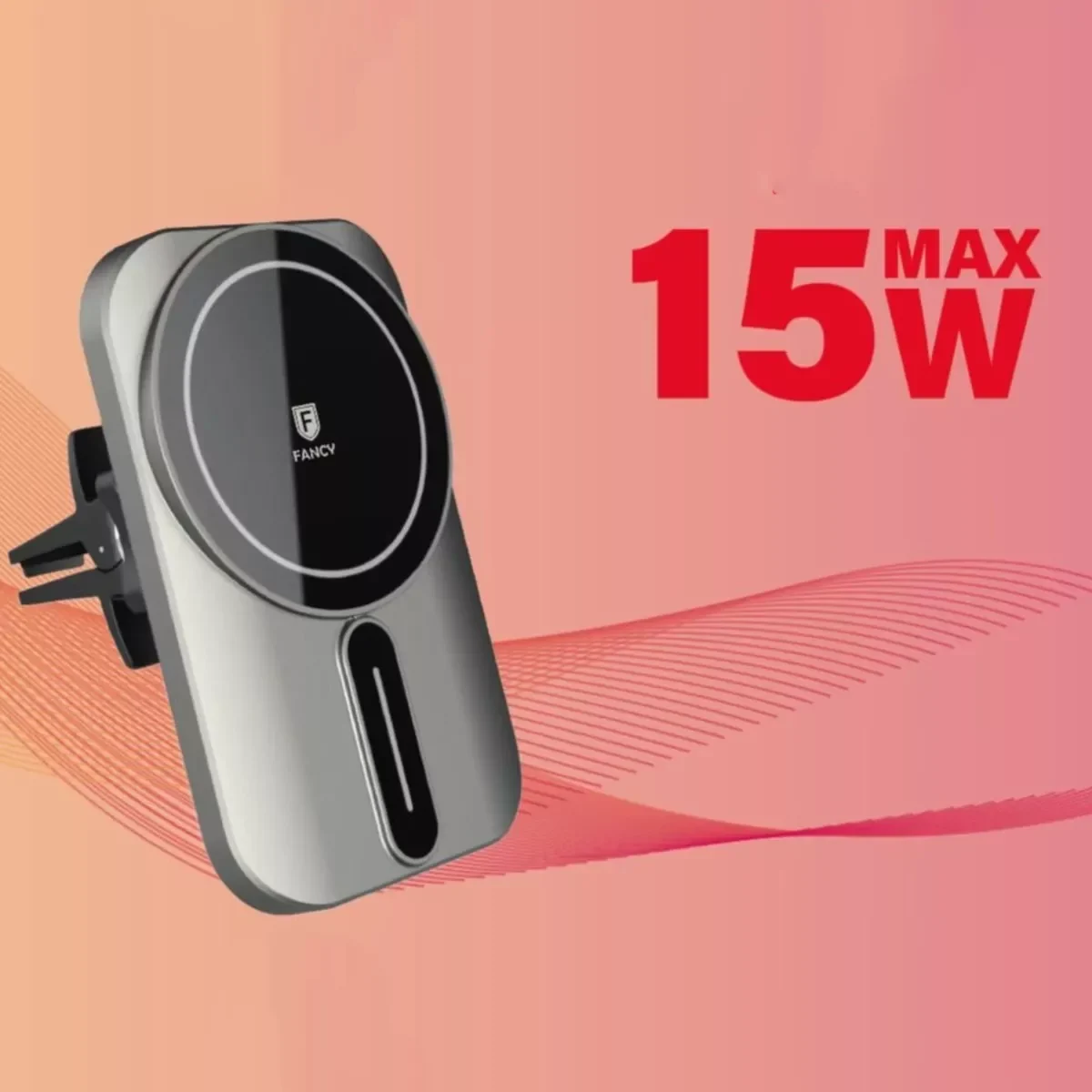 O Carregador Veicular CW02 da Fancy oferece carregamento sem fio magnético com tecnologia MagSafe de 15W, garantindo praticidade e eficiência para seu iPhone durante as viagens.