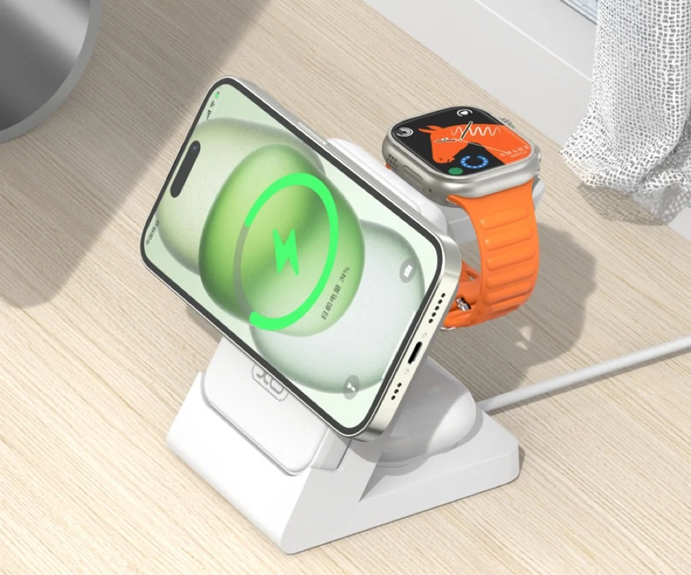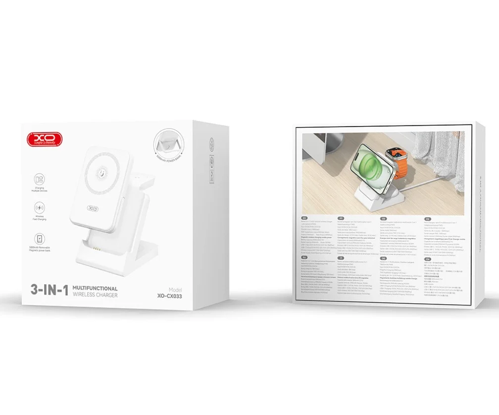 A Estação de Carregamento 3 em 1 XO CX033 é a solução completa para manter seus dispositivos sempre prontos. Com suporte integrado para smartphone e carregador portátil, facilita o dia a dia com organização e eficiência.
