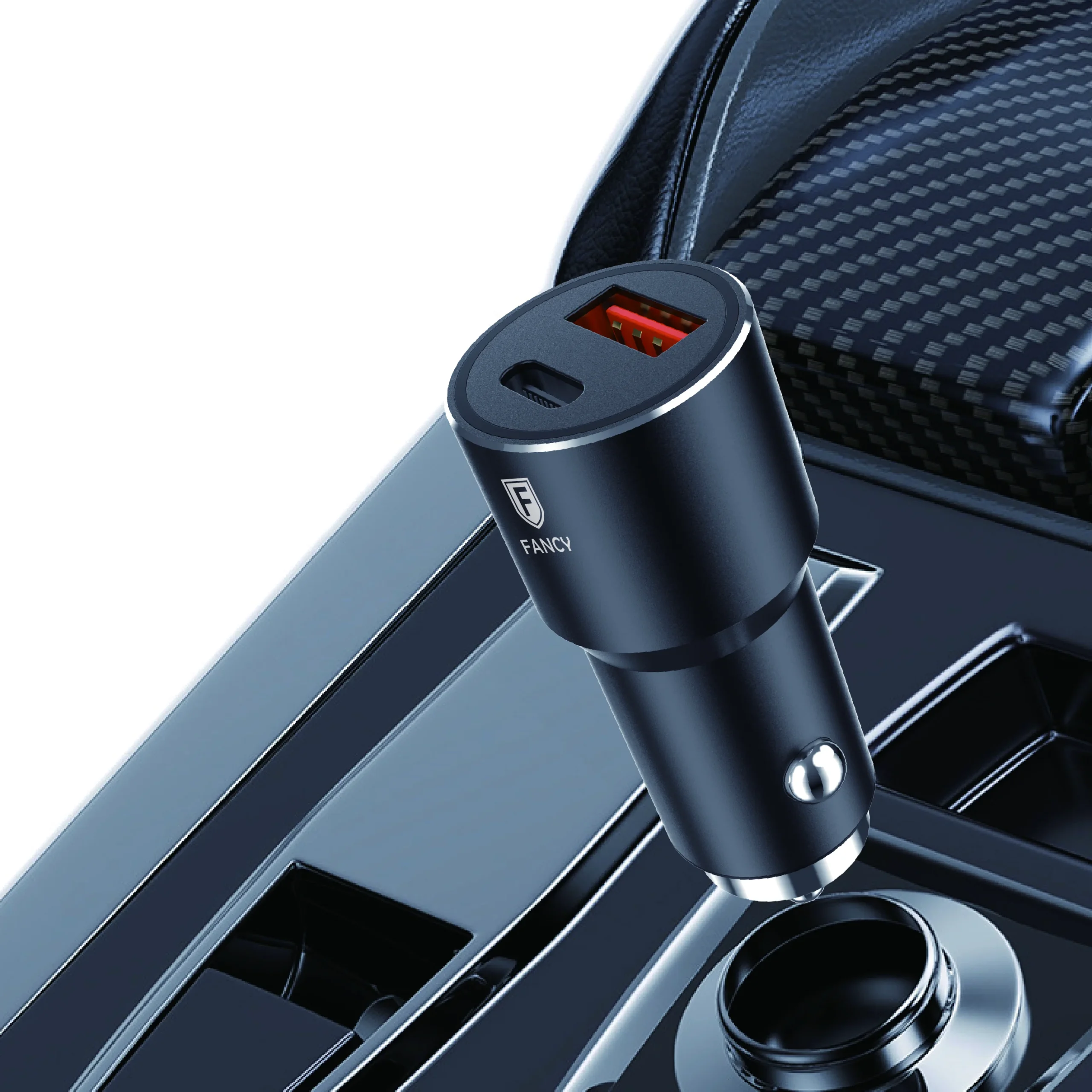 O Carregador Veicular CCK05 da Fancy oferece carregamento rápido e eficiente com duas saídas: USB-A convencional e USB-C PD, totalizando 38W de potência para manter seus dispositivos sempre carregados durante as viagens.