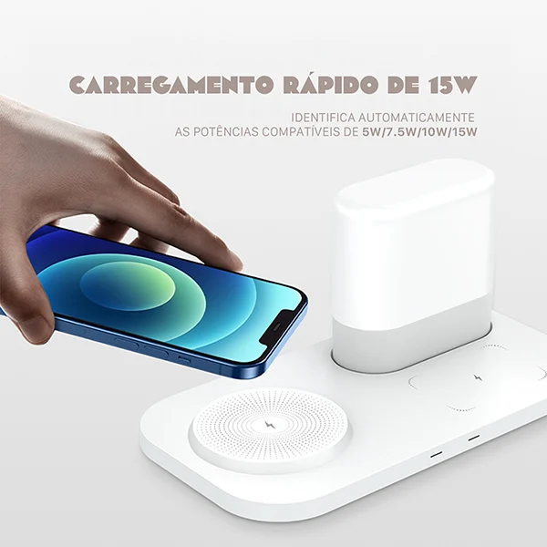 • 4 em 1: carregue simultaneamente iPhone, Apple Watch, AirPods e mais