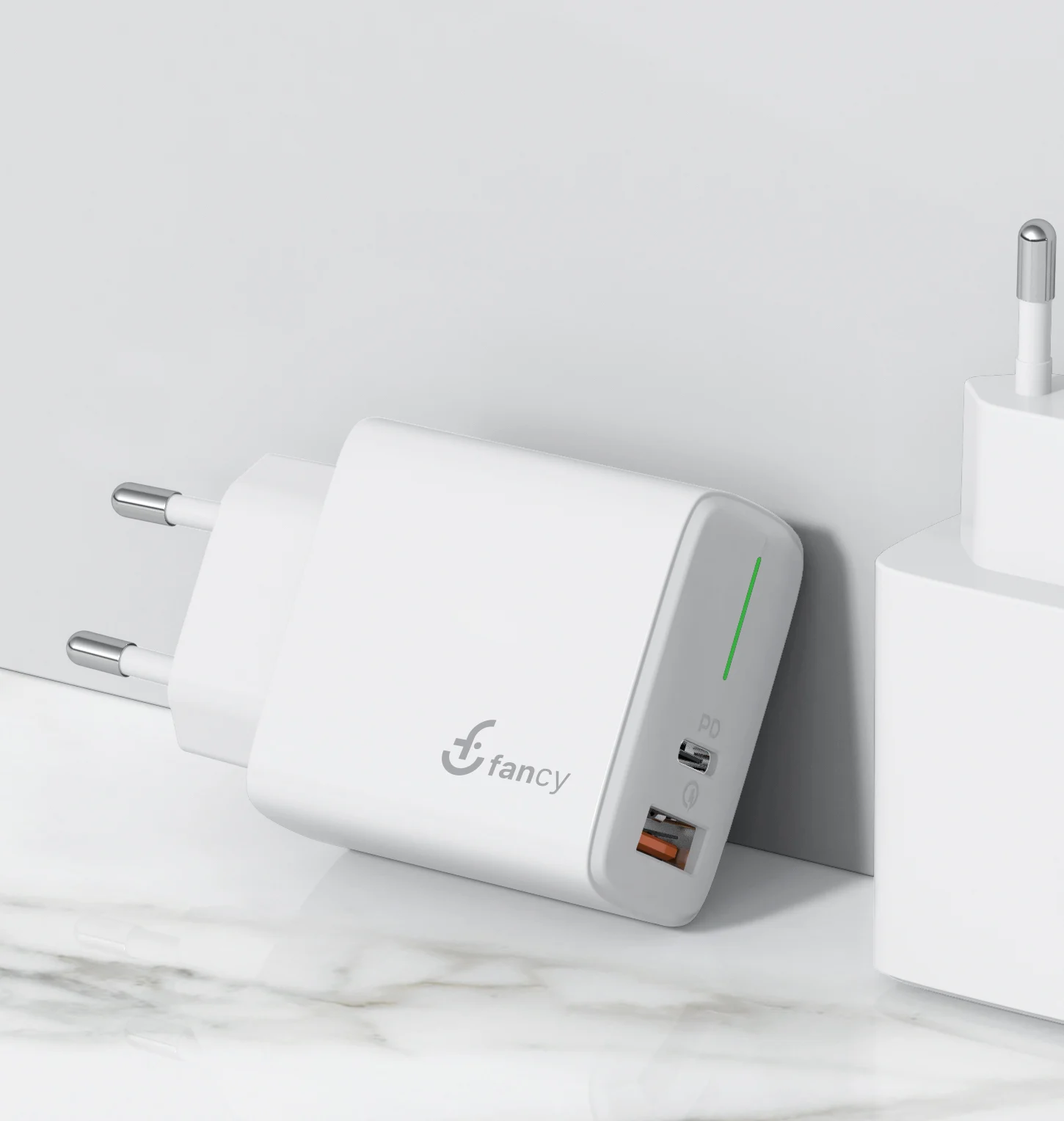 O Carregador Turbo PD05 da Fancy combina velocidade, segurança e praticidade com tecnologia inteligente de reconhecimento de carga. Equipado com duas portas (USB-C e USB-A), ele permite carregar dois dispositivos simultaneamente com potência total de até 20W, adaptando-se automaticamente ao que seu aparelho precisa.