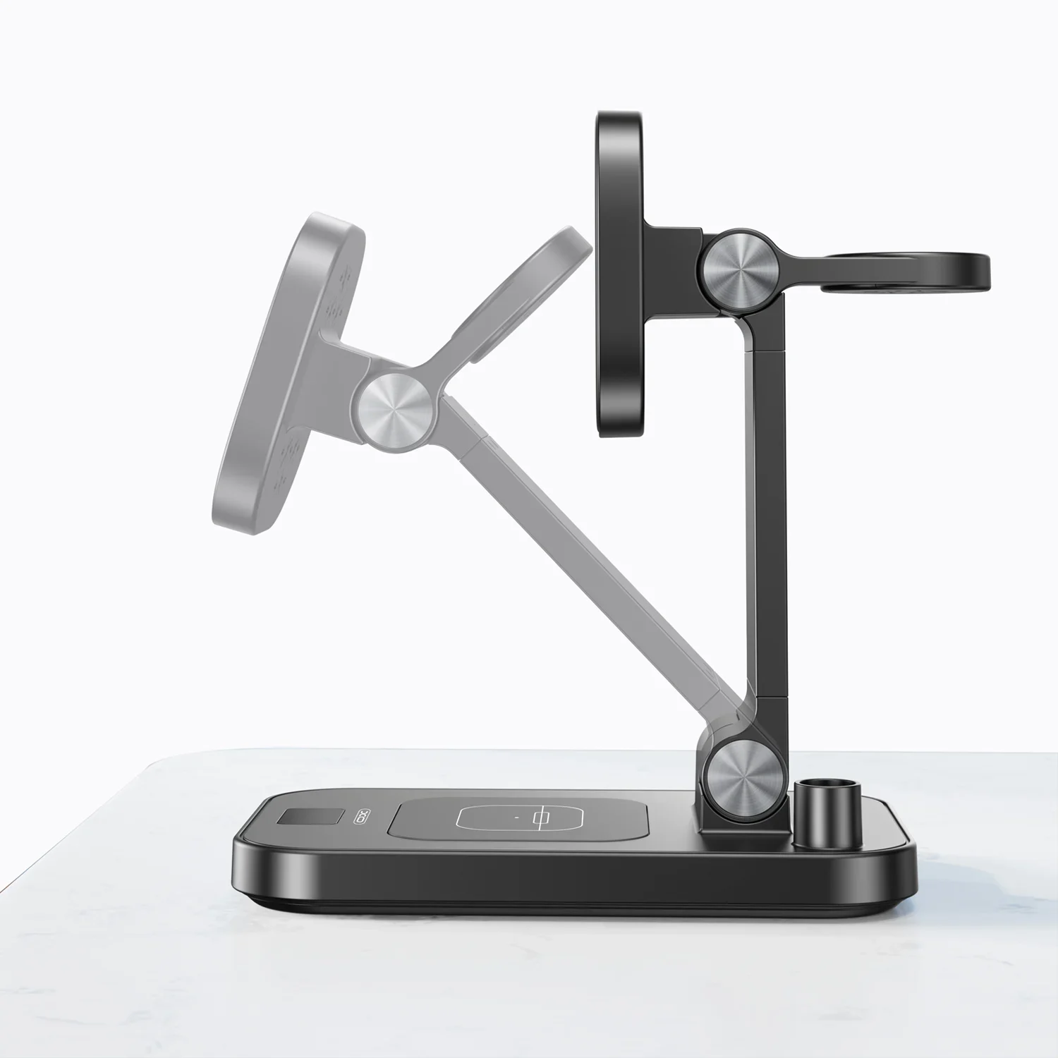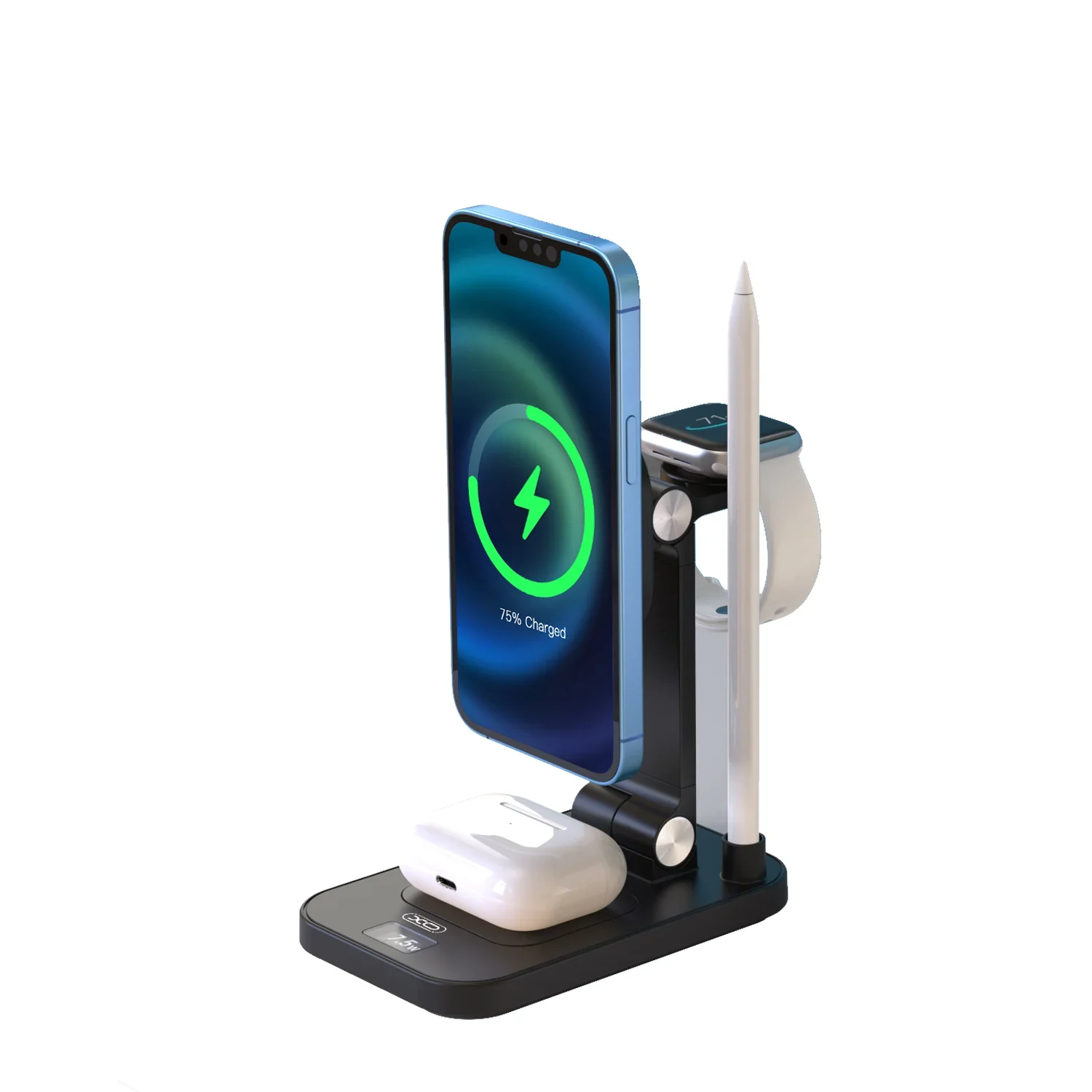 O Carregador Wireless TK23 da XO oferece uma solução completa e prática com tecnologia 4 em 1. Compatível com MagSafe, ele permite o carregamento simultâneo de múltiplos dispositivos com eficiência e rapidez.